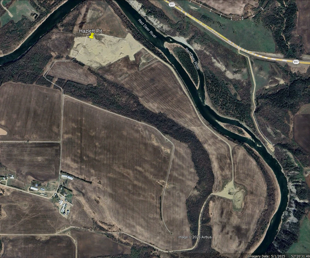 The Ballachay Pit is located along Secondary Highway 633 east of Villeneuve and west of St. Albert. The 15 acre pit was opened in Spring 2005 and the final cut was removed in early summer of 2006.